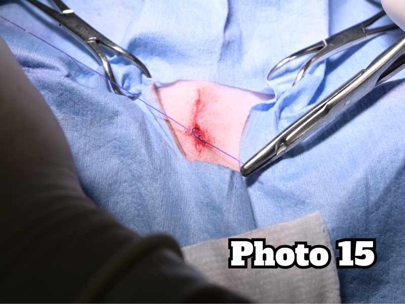 We are providing a pictorial overview of a canine orchiectomy, commonly known as neuter surgery. This procedure is being performed on an 8-month-old, 15-pound male dog.